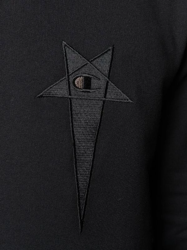 Sweat à logo brodé Rick Owens x Champion Rick Owens avec encolure ras du cou, patch logo brodé sur la poitrine, boutons pression et bords francs.