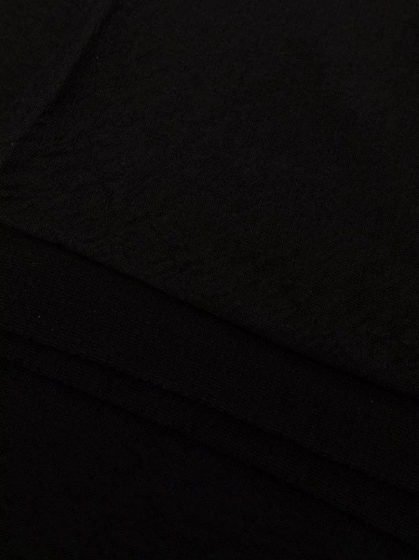 Maille fine, coupe longue, ourlet droit. Couleur : noir. Matière : cachemire.