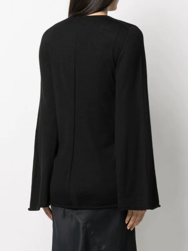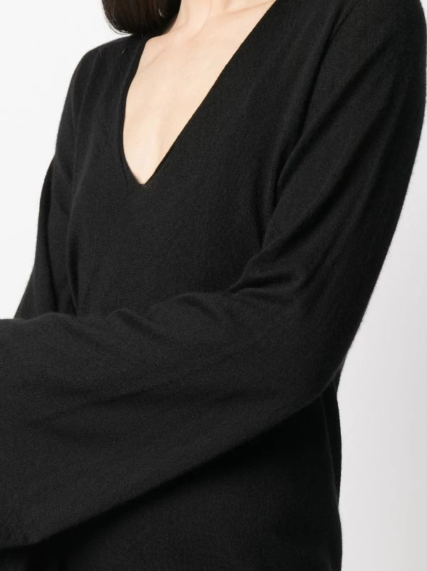 Col v, manches longues, finitions à bords francs, manches longues évasées. Couleur : Noir. Matière : cachemire.