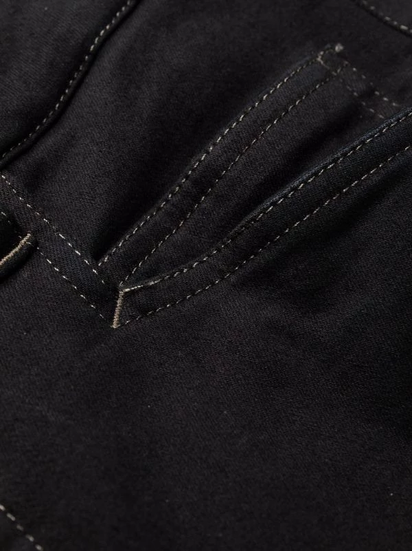Détails de découpes, coupe skinny, fermeture à zip et boutons sur le devant, poches plaquées latérales, taille mi-haute. Couleur : noir. Matière : coton.