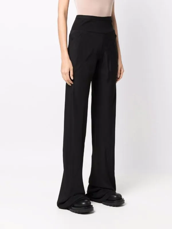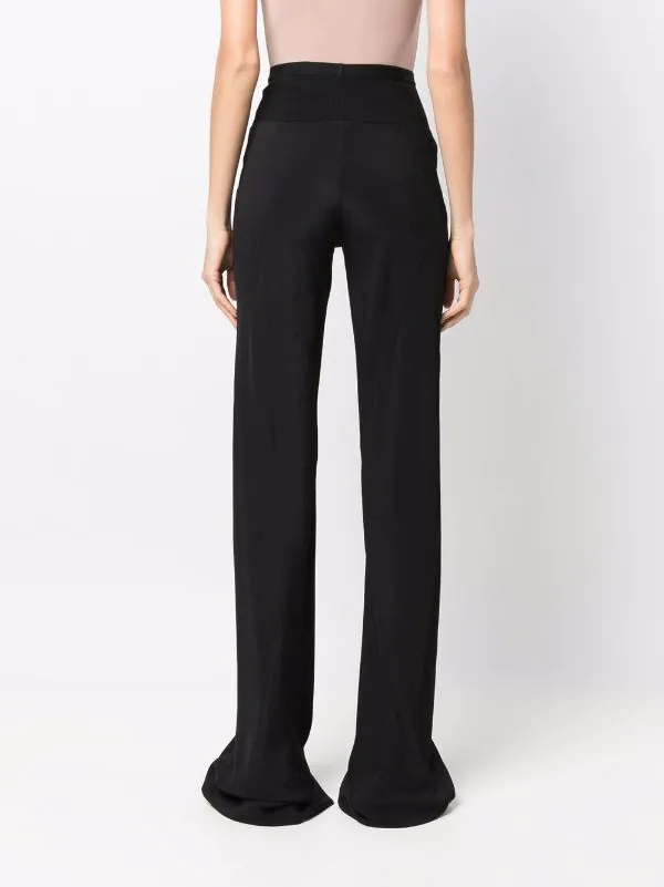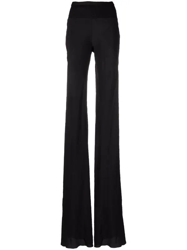 Ceinture élastique, taille haute, coupe évasée, coupe longue. Couleur : noir.