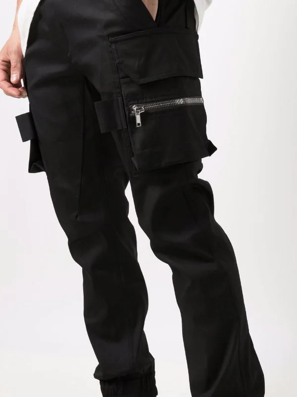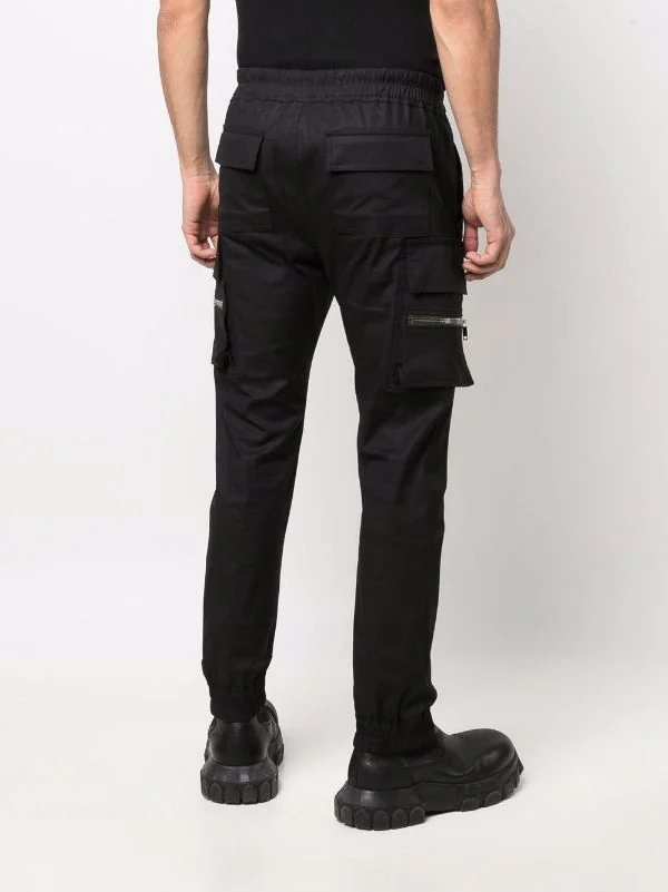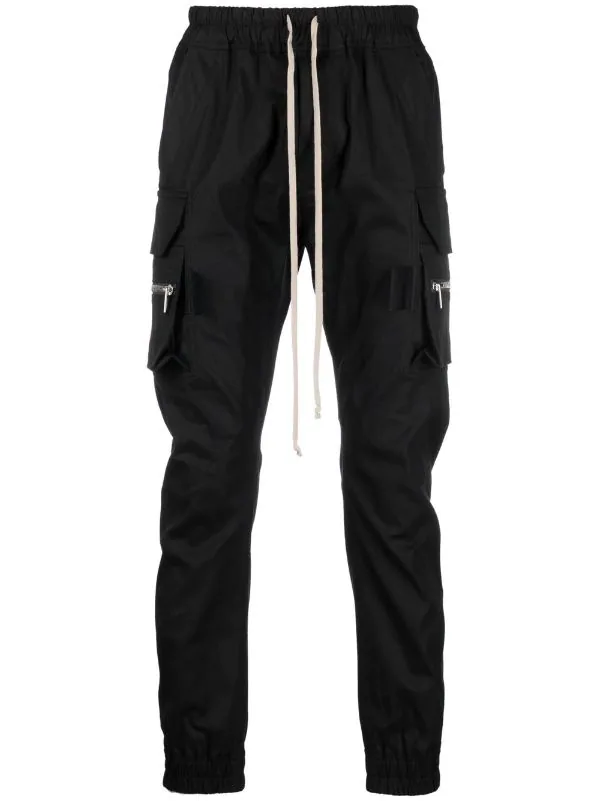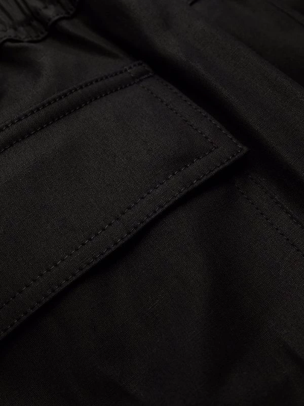 Coton stretch, taille élastique à lien de resserrage, coupe fuselée. Couleur : noir.