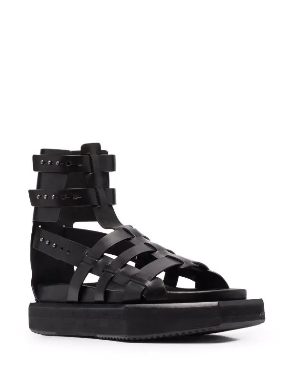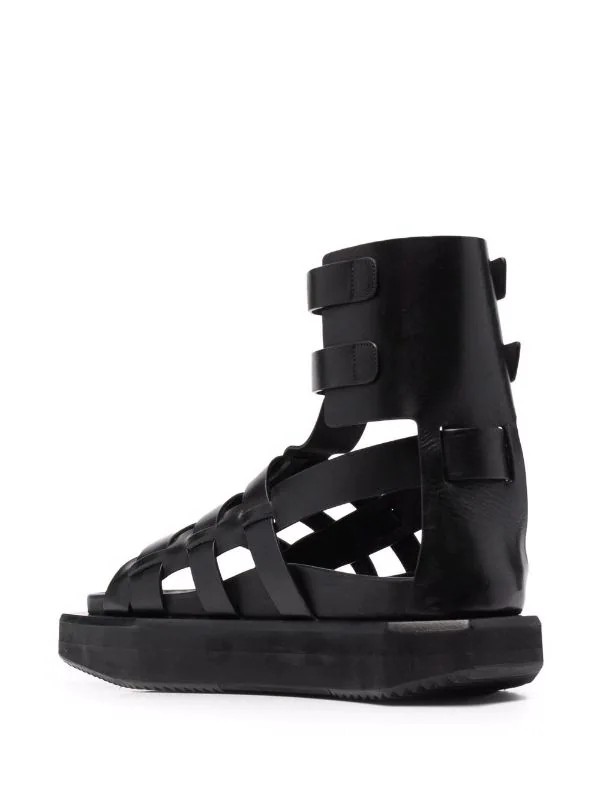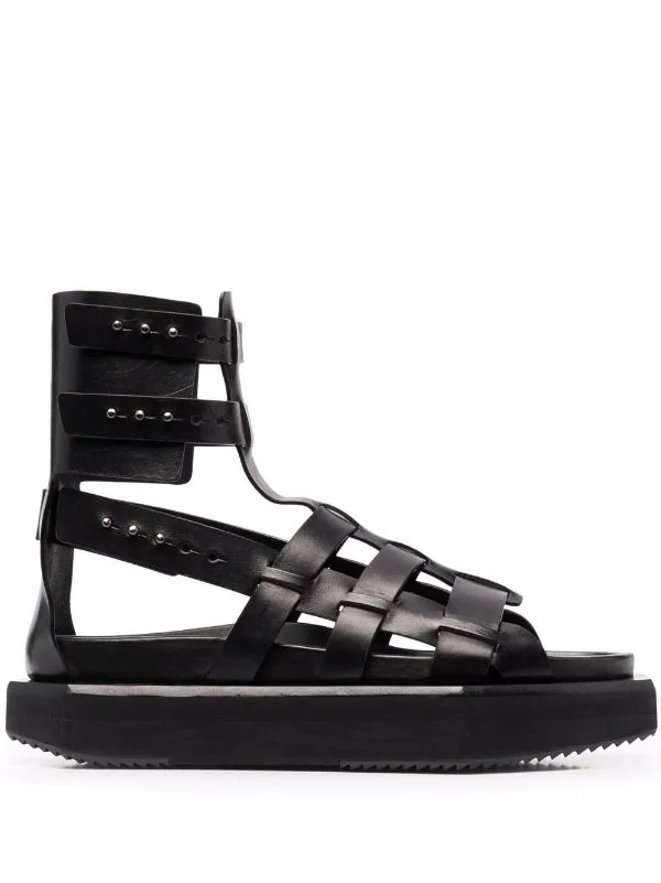 Bout ouvert, semelle intérieure anatomique, coutures ton sur ton, design à renfort cage, ornements argentés, semelle intérieure à logo, semelle épaisse en caoutchouc. Couleur : noir. Matière : cuir.