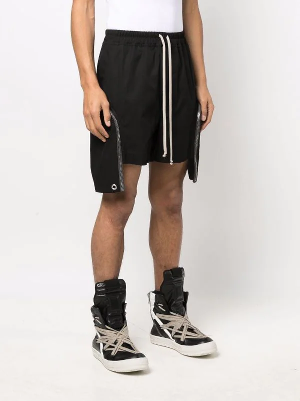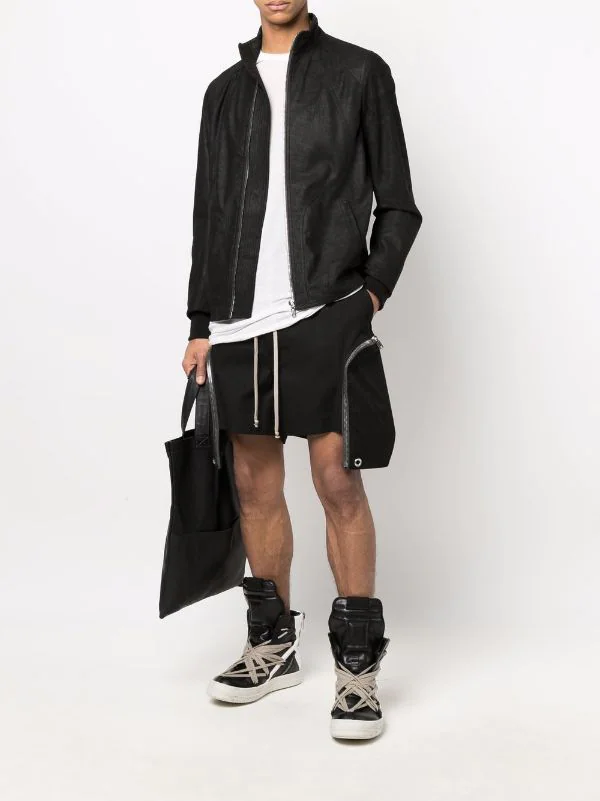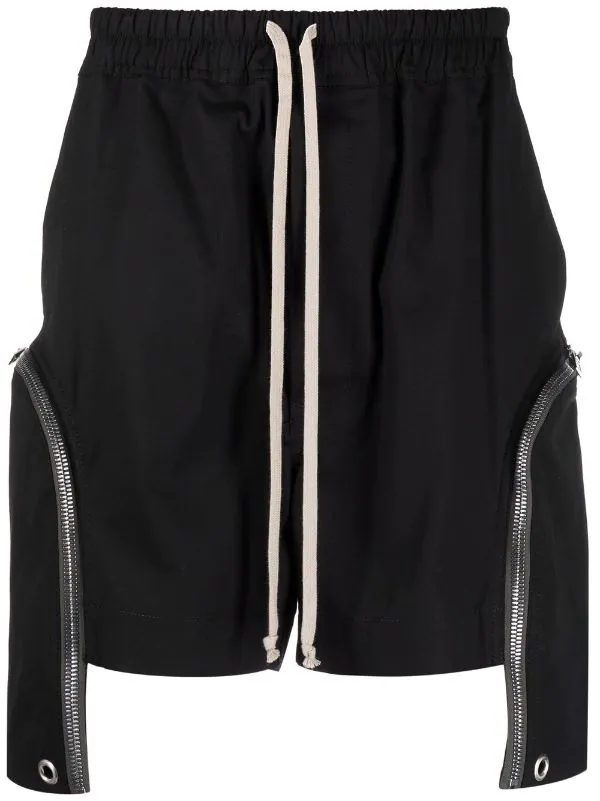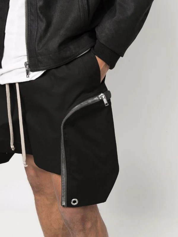 Détails d’œillets, taille élastique à lien de resserrage, deux poches latérales zippées. Couleur : noir.