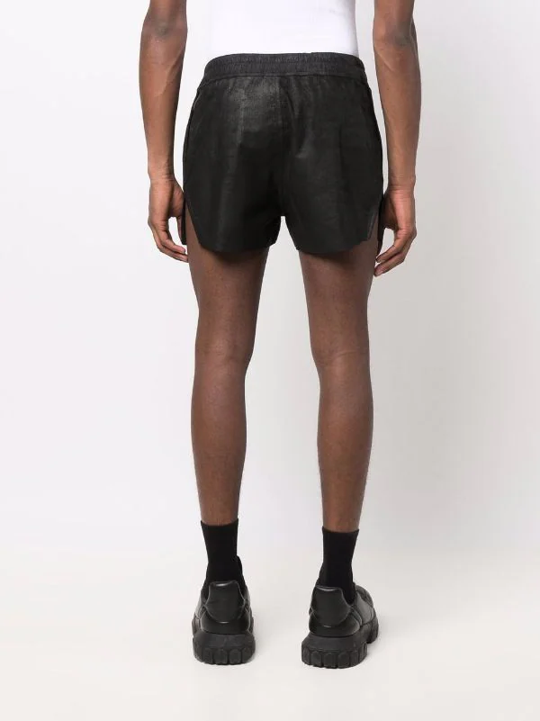Enduit ciré, fermeture à lien de resserrage, deux poches latérales fendues, coupe courte.