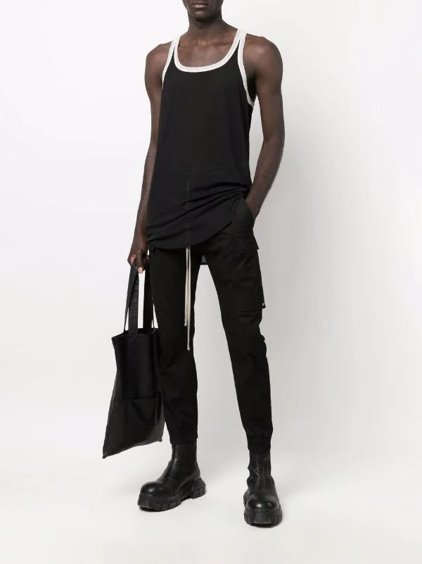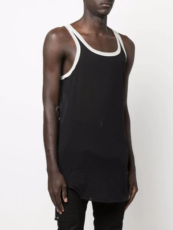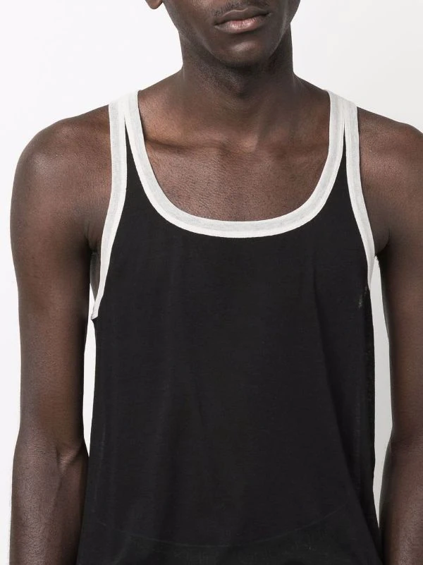 Bordure contrastante, encolure ronde, design sans manches. Couleur : noir. Matière : coton.
