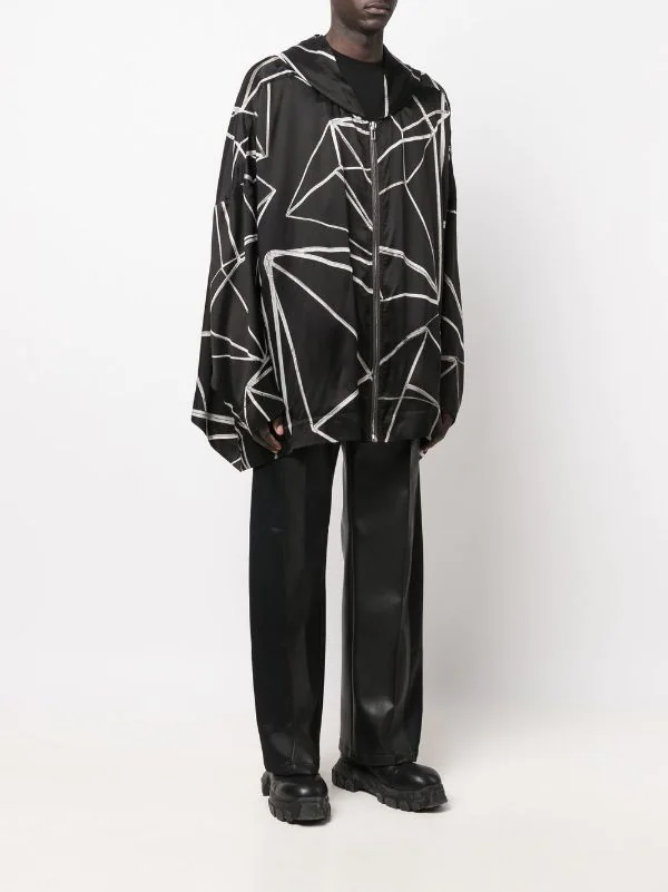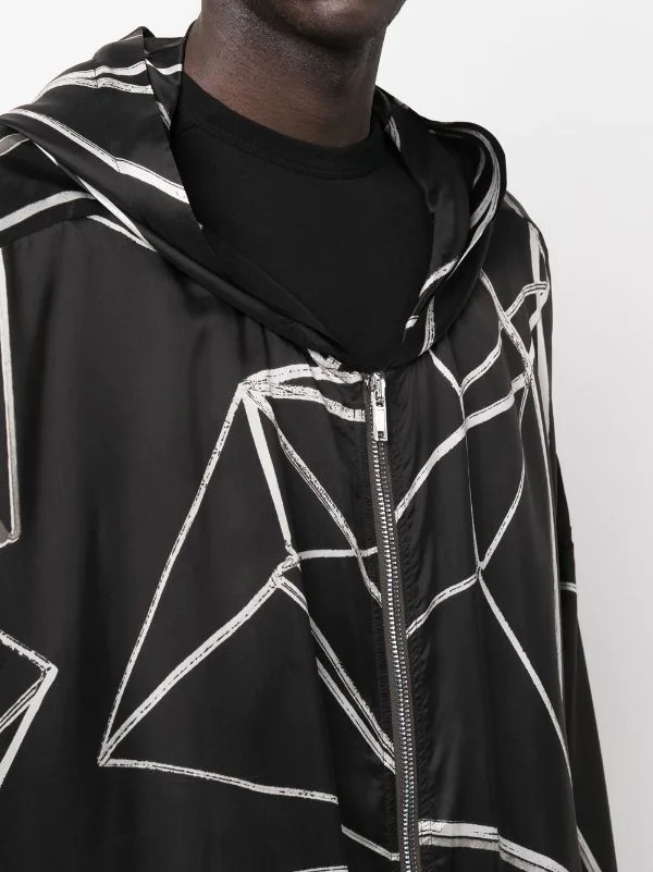 Imprimé abstrait, structure légère, capuche souple, fermeture zippée devant, manches longues raglan, ourlet droit.