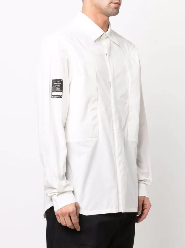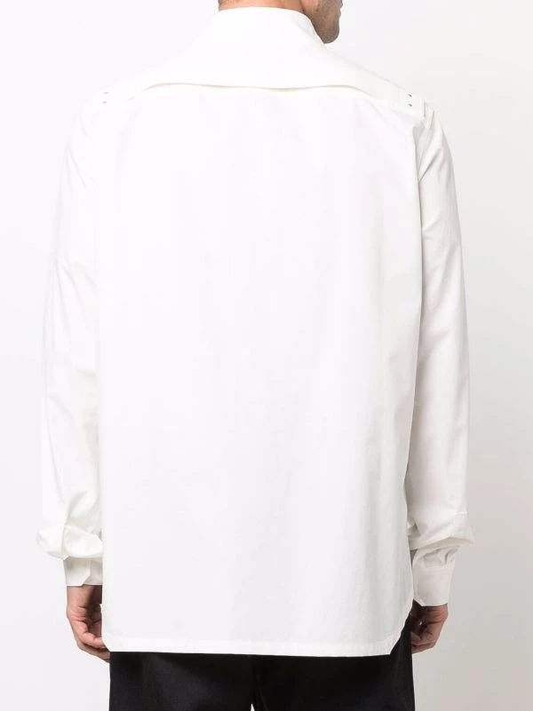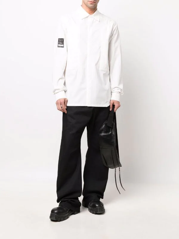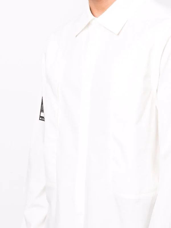 Design à empiècements, logo imprimé sur la manche, col pointu plat, boutonnière sur le devant, manches longues, poignets boutonnés, ourlet droit. Matière : coton.