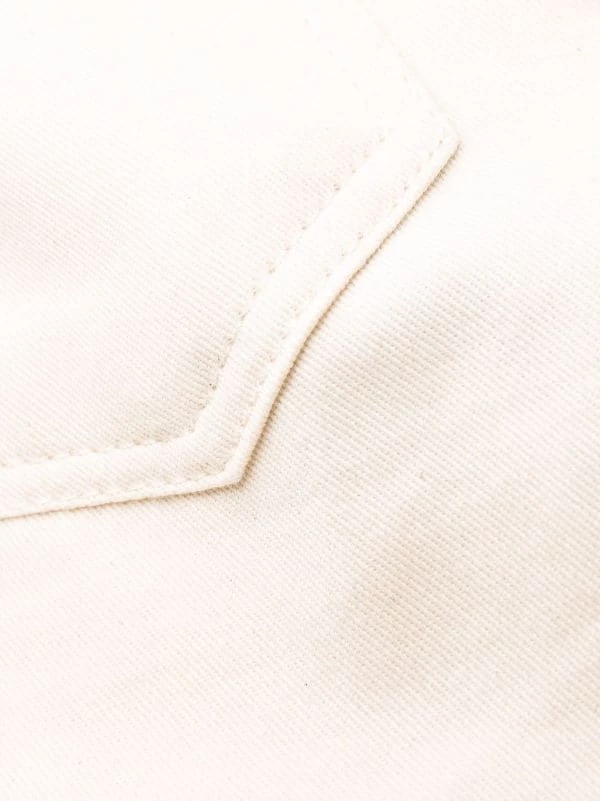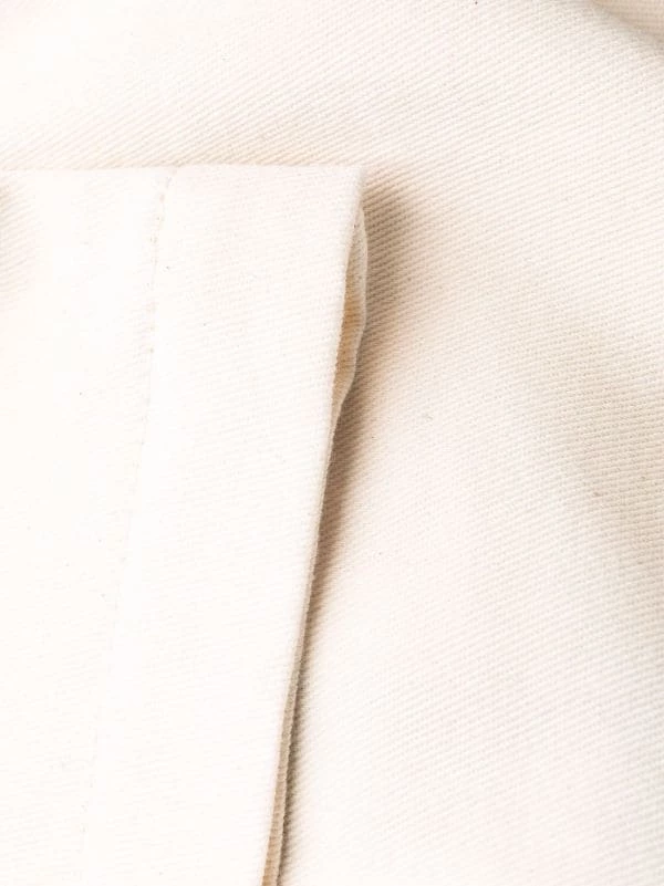 Coupe évasée, boutonnière sur le devant, poches latérales fendues, poches arrière plaquées.