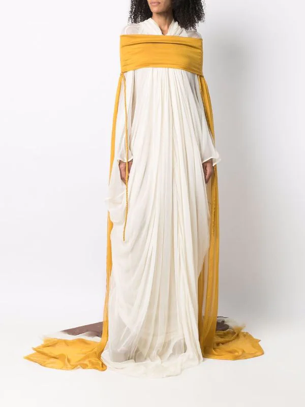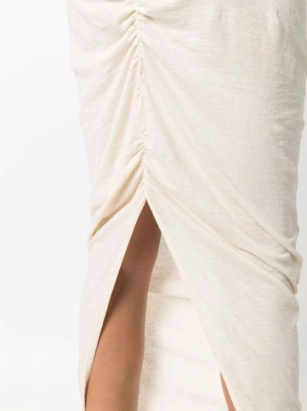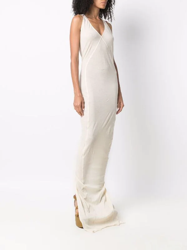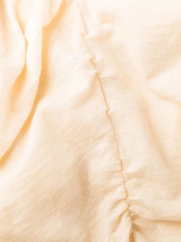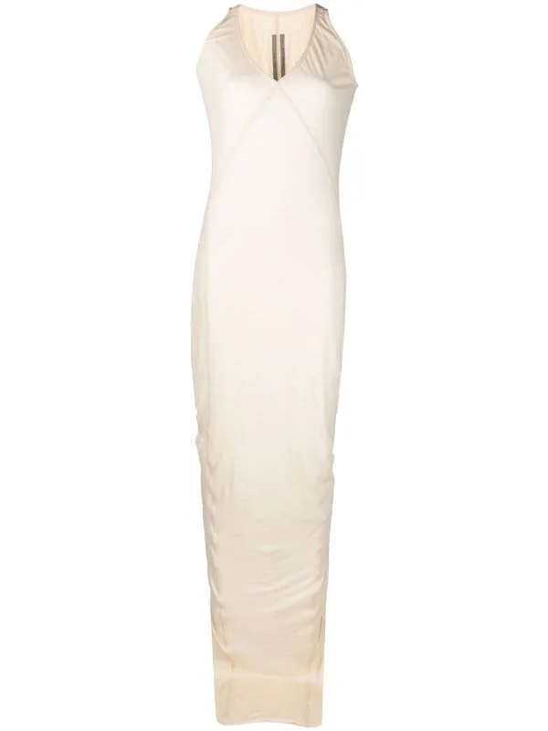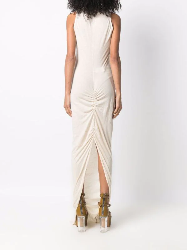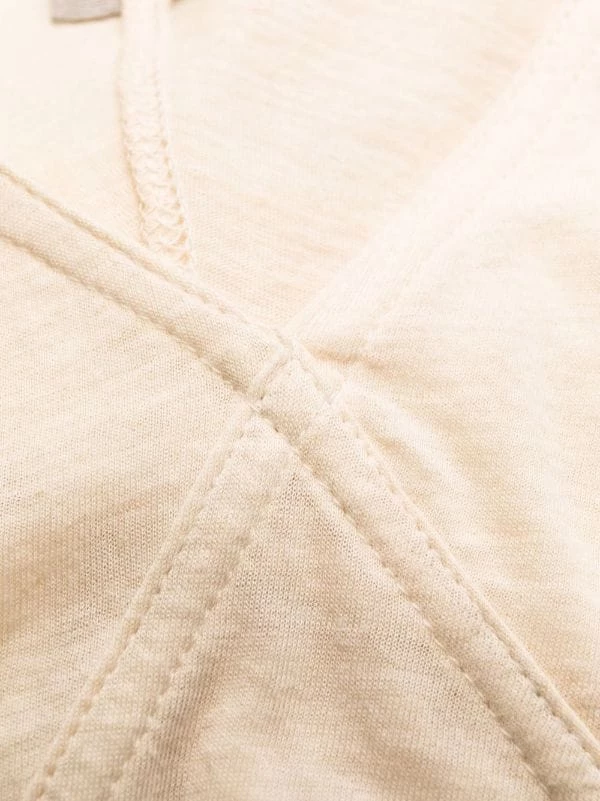 Détails de fronces, fente à l’arrière, col v, design sans manches.