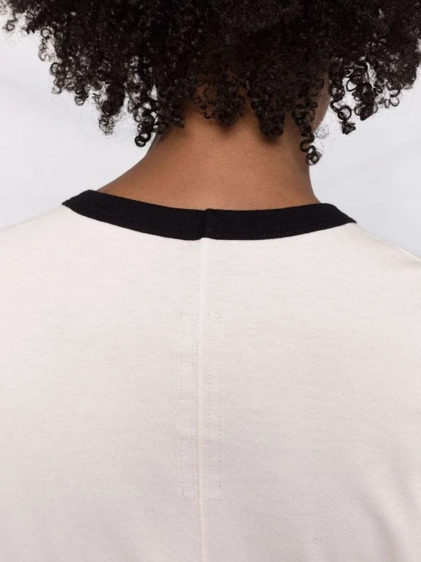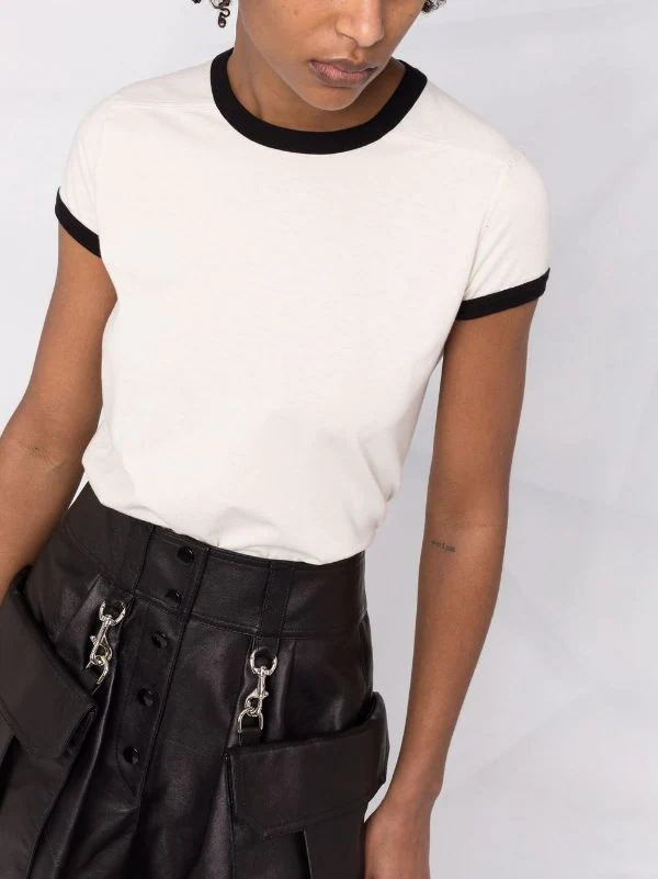 Bordure contrastante, encolure ras du cou, manches courtes, coupe slim. Matière : coton.
