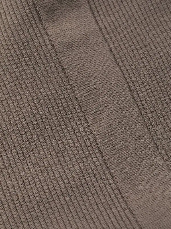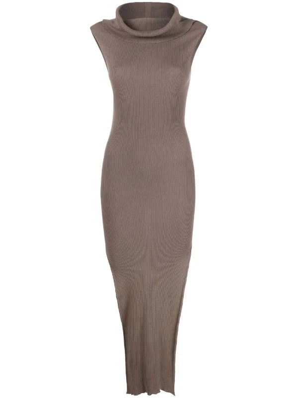 Design en maille, design sans manches, effet drapé, fente latérale, bords francs. Couleur : marron. Matière : coton.