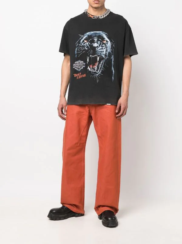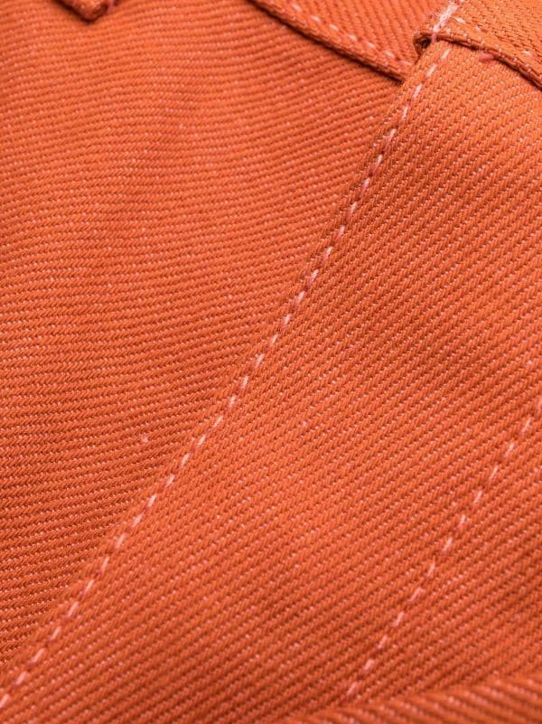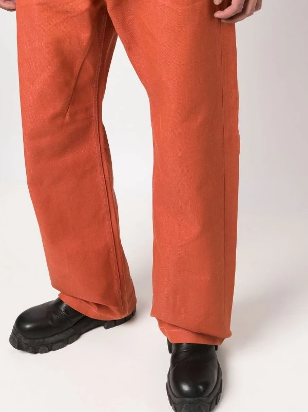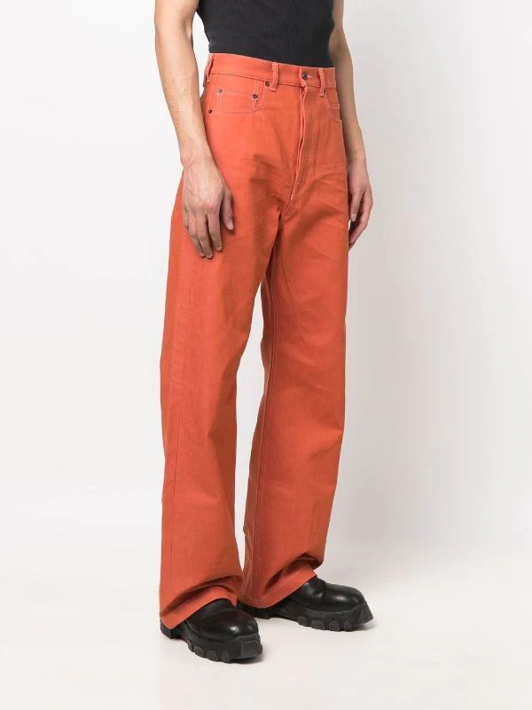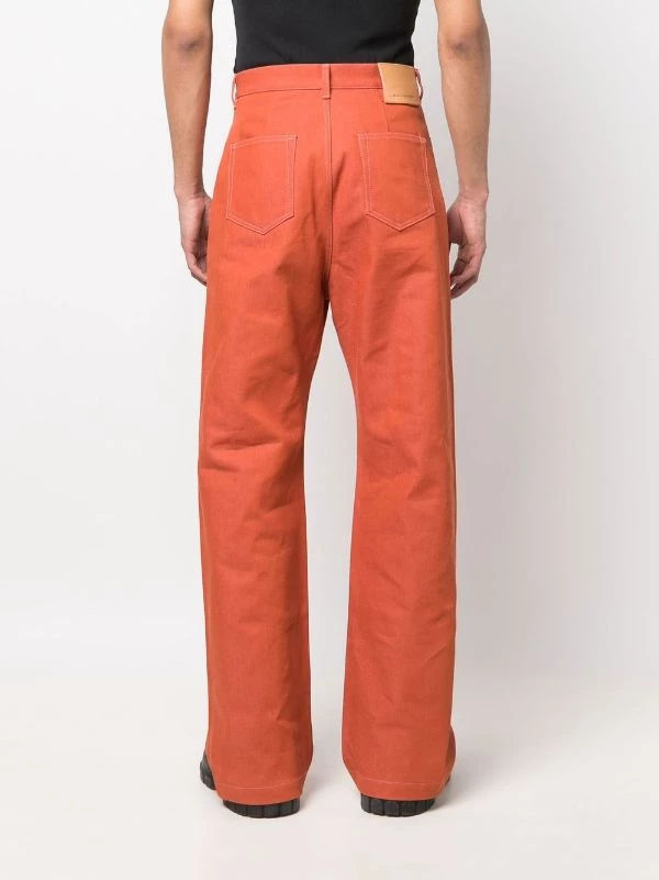 Patch logo sur l’arrière, cinq poches classiques, coupe évasée, coupe droite.