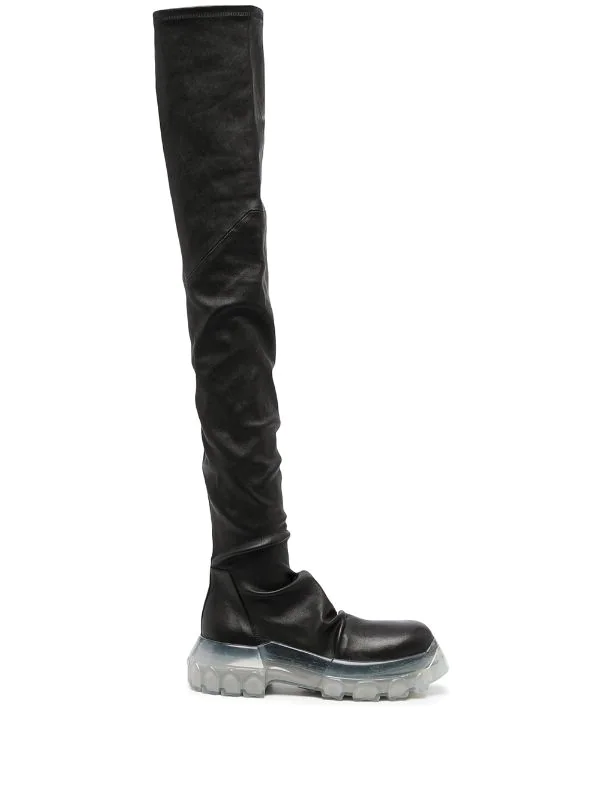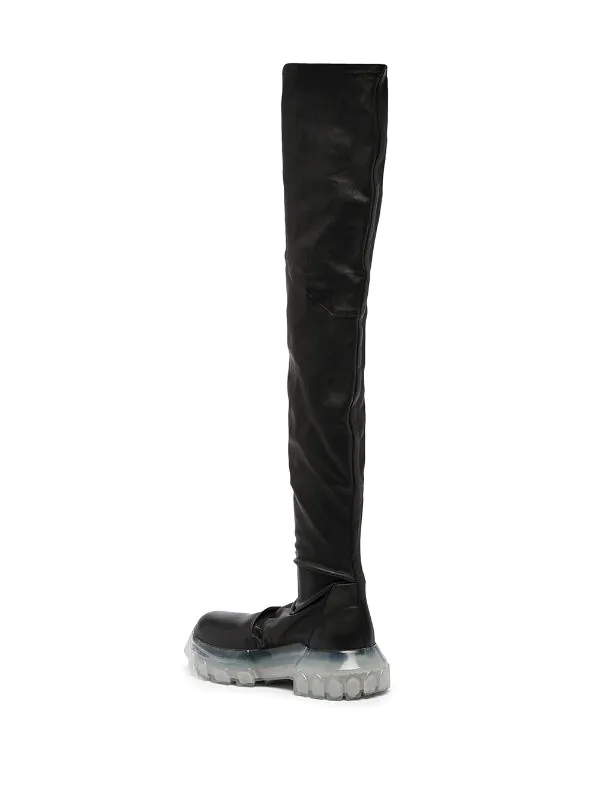 Coupe courte, bout rond, petit talon, semelle épaisse en caoutchouc transparent. Couleur : noir.
