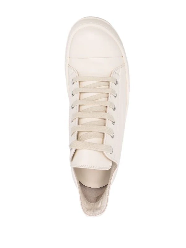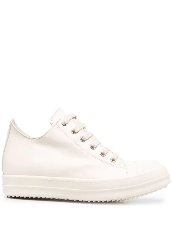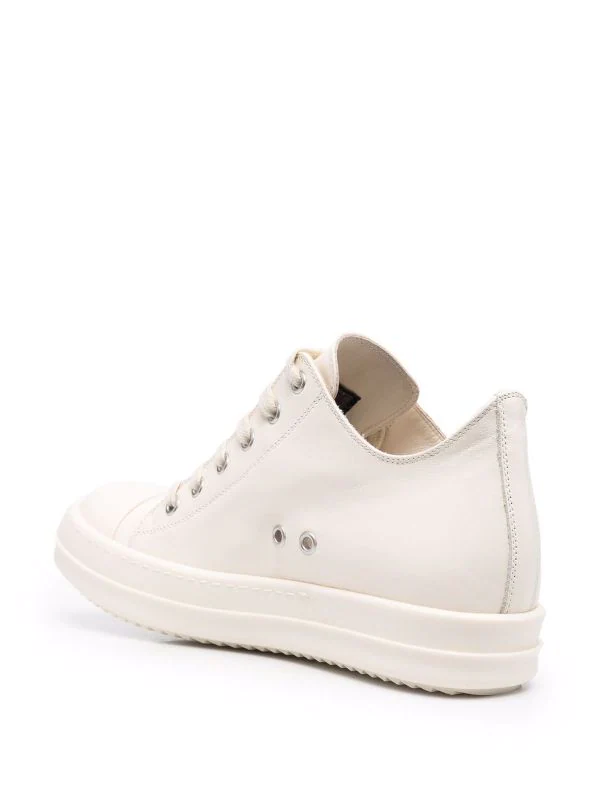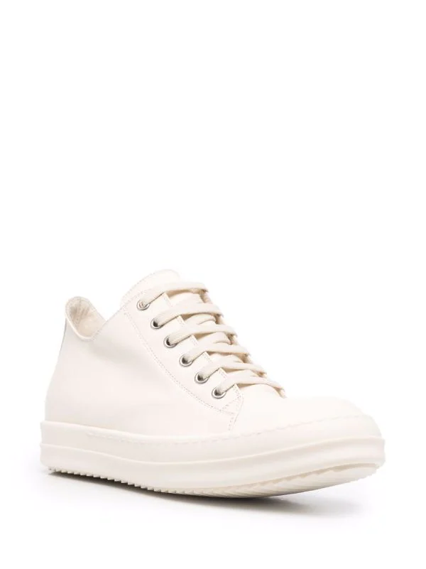 Design ton sur ton, fermeture à lacer sur le devant, bout rond, semelle plate en caoutchouc. Couleur : blanc. Matière : cuir.