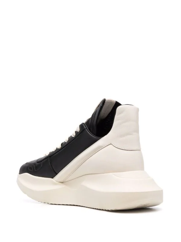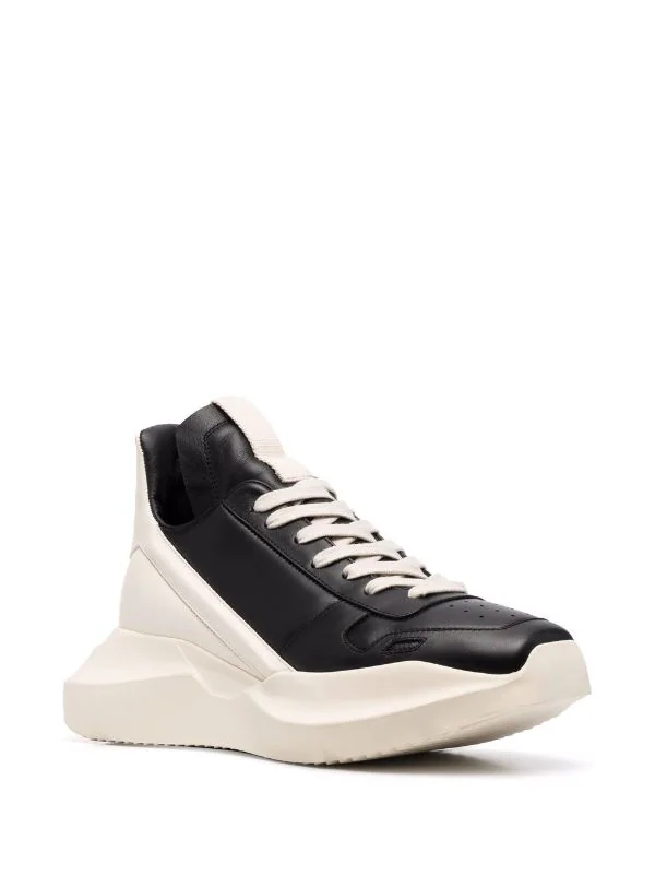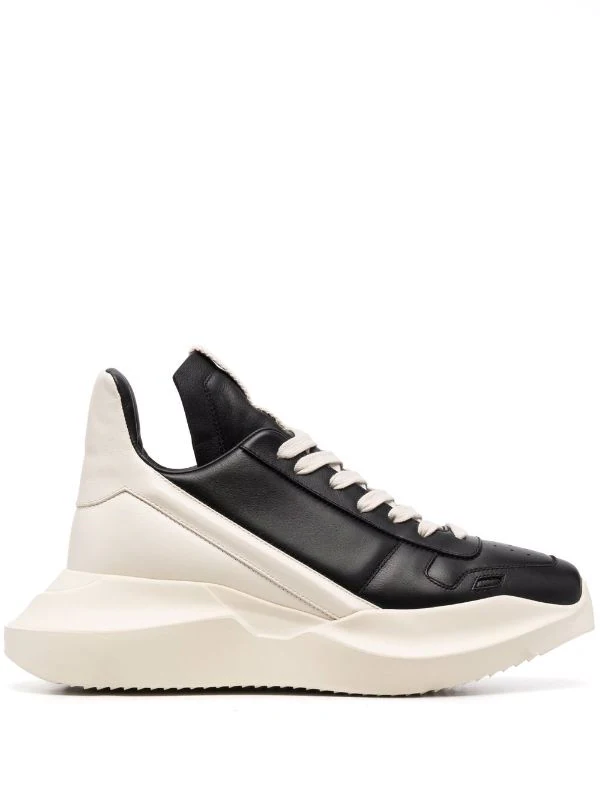 Modèle bicolore, bout asymétrique, fermeture à lacer sur le devant, semelle épaisse en caoutchouc. Couleur : noir. Matière : cuir.