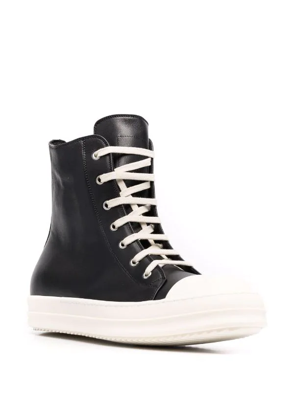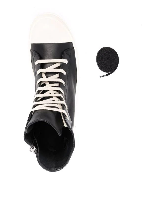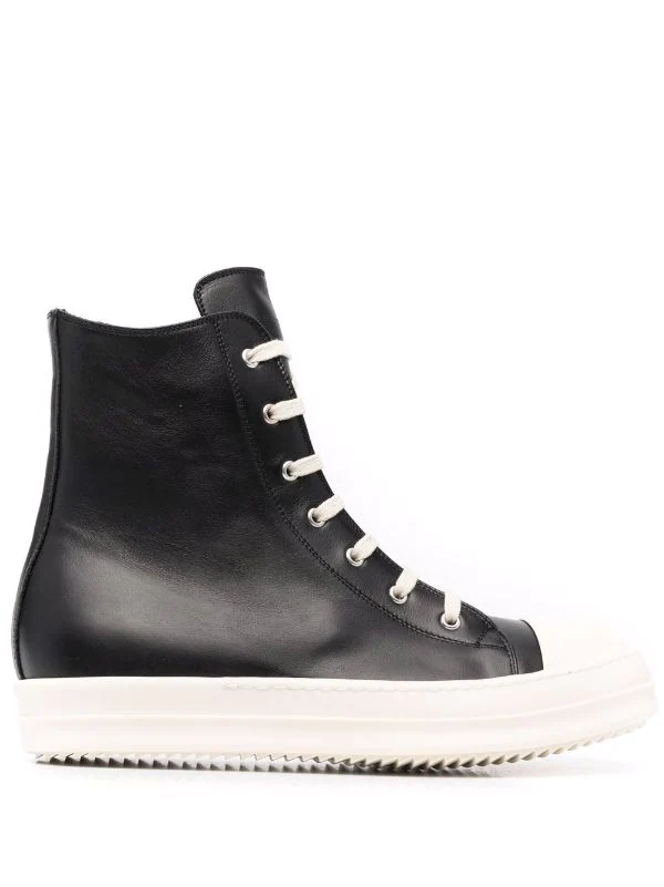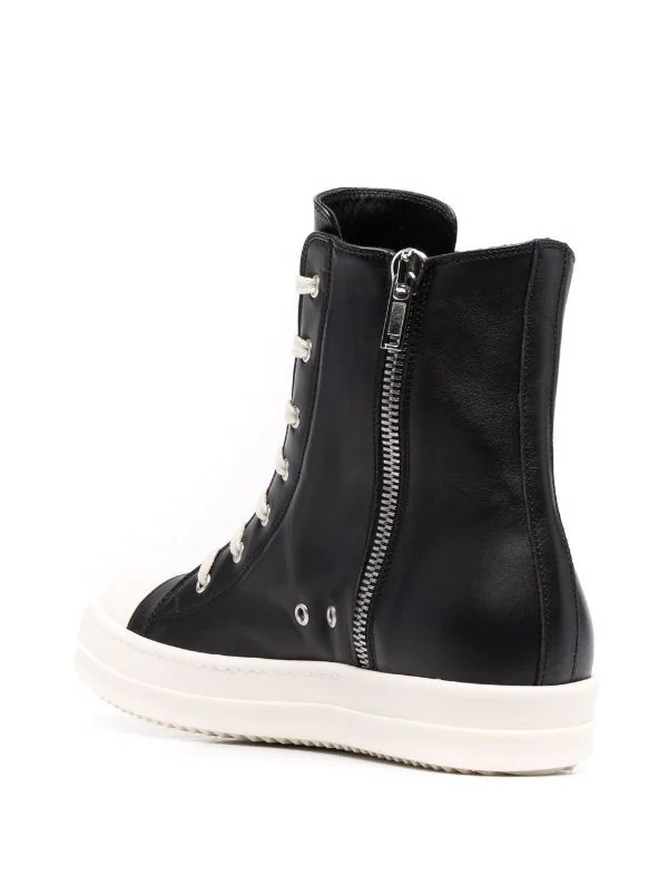 Bout en caoutchouc, semelle plate en caoutchouc, fermeture à lacer sur le devant, fermeture zippée sur le côté, lacets interchangeables. Couleur : noir. Matière : cuir.