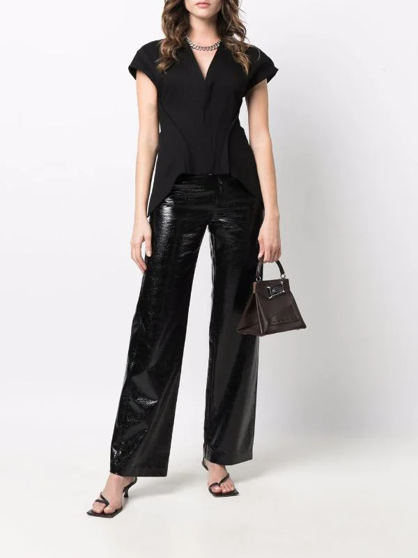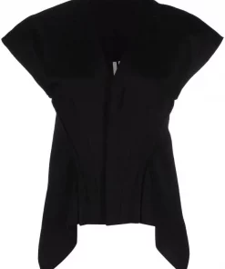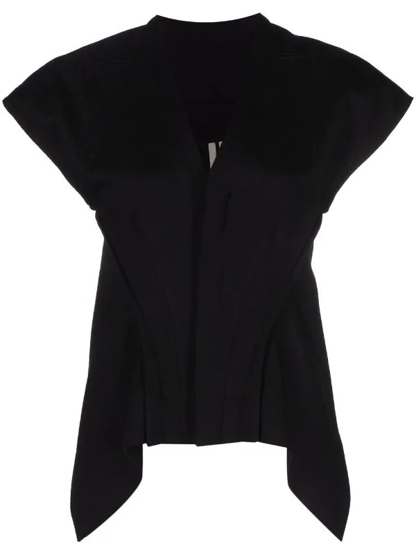 Col v, fermeture dissimulée sur le devant, design sans manches, pinces, ourlet asymétrique. Couleur : noir. Matière : coton biologique.
