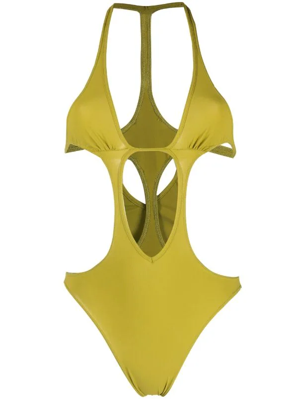 Détails de découpes, dos-nu, bonnets triangles, construction stretch, design sans manches.