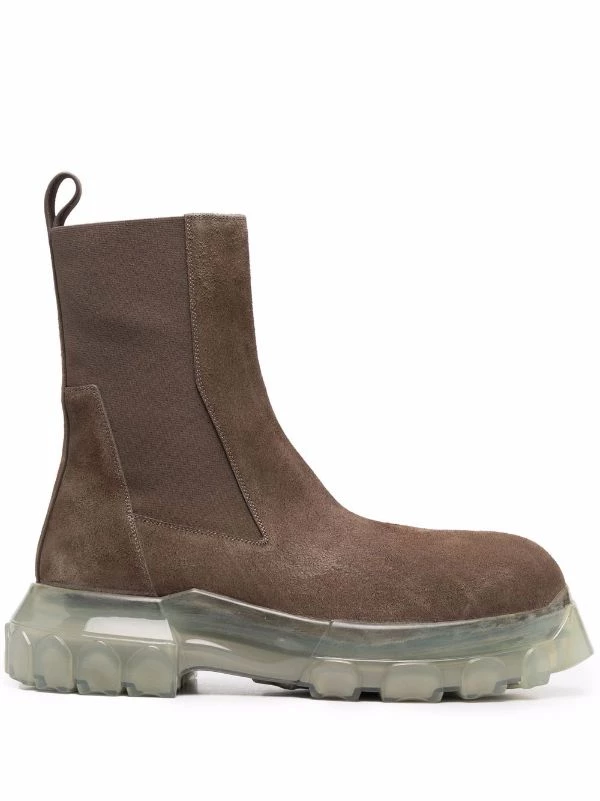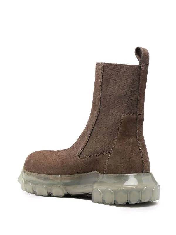 Daim, empiècements élastiqués sur les côtés. Matière : cuir.