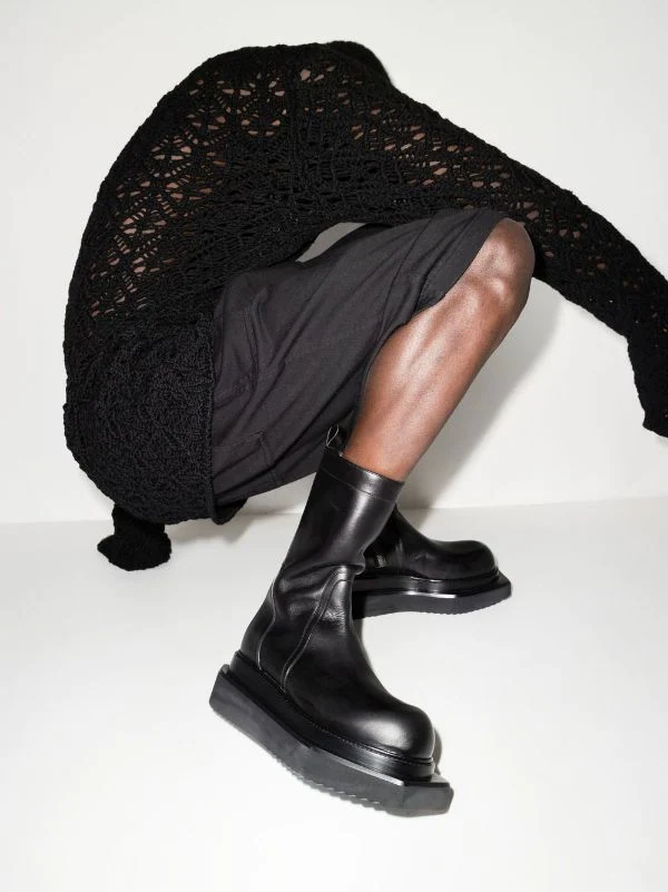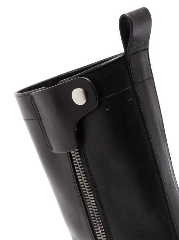 Noir, cuir, languette d’enfilage au talon, fermeture zippée sur le côté, bout rond, bout en caoutchouc, semelle plate en caoutchouc.