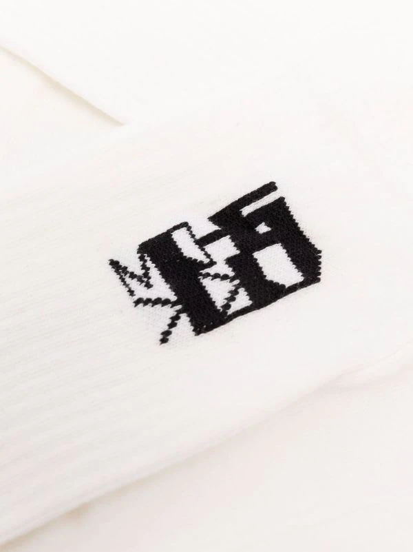 Maille nervurée, hauteur cheville. Couleur : blanc. Matière : coton.