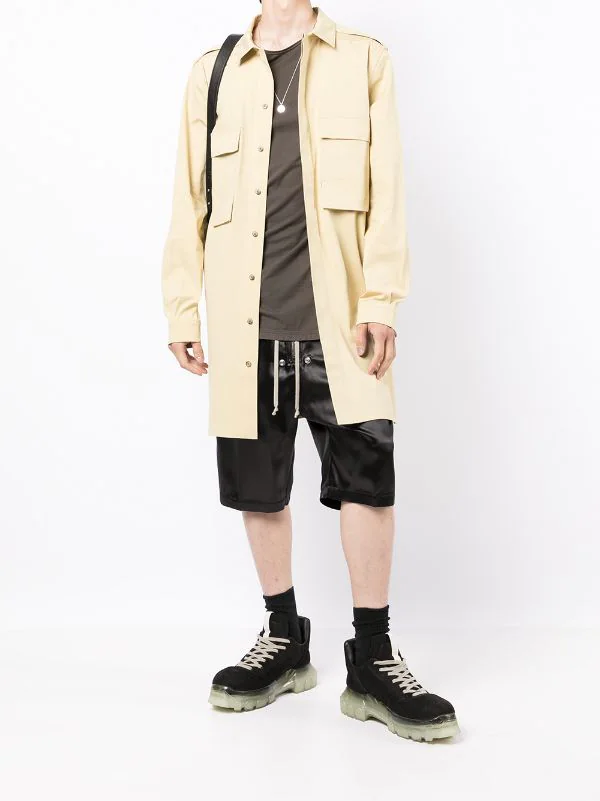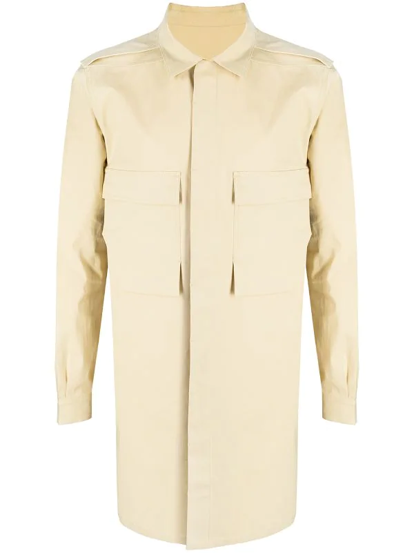 Col classique, fermeture dissimulée sur le devant, manches longues, deux poches poitrine à rabat, ourlet incurvé.