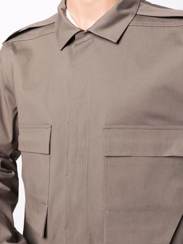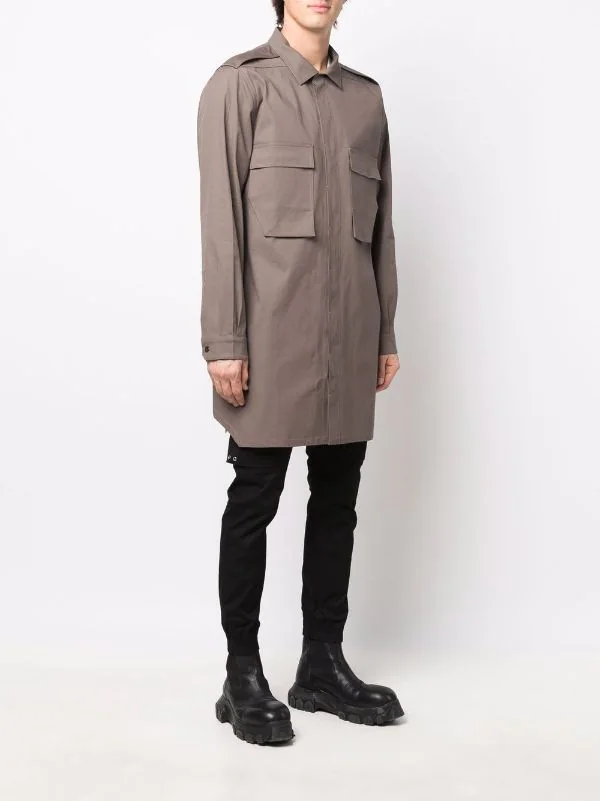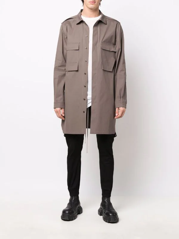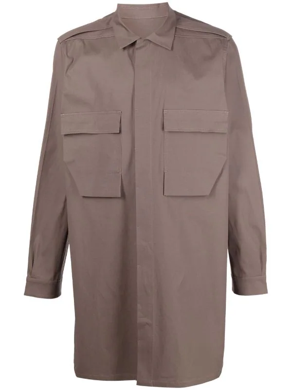 Col classique, fermeture dissimulée sur le devant, manches longues, poches devant à rabat.