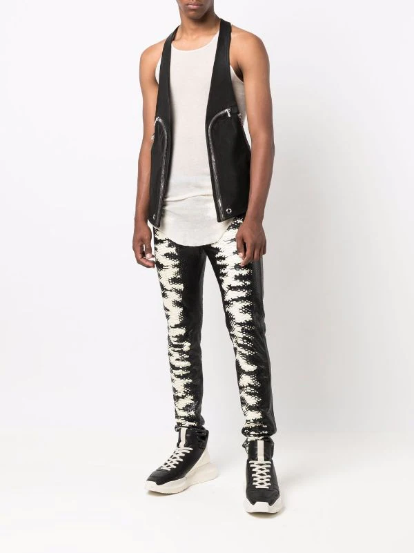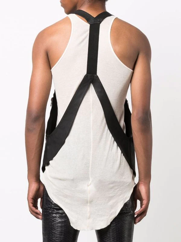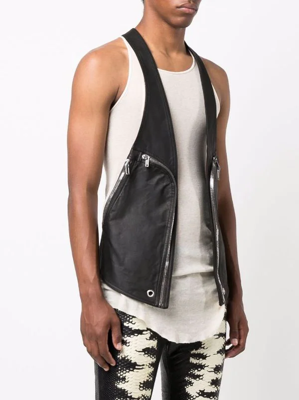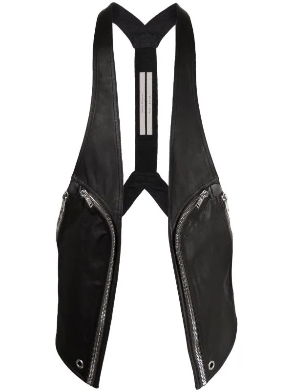 Poches multiples zippées, talon ouvert, détails de brides. Couleur : noir. Matière : cuir.