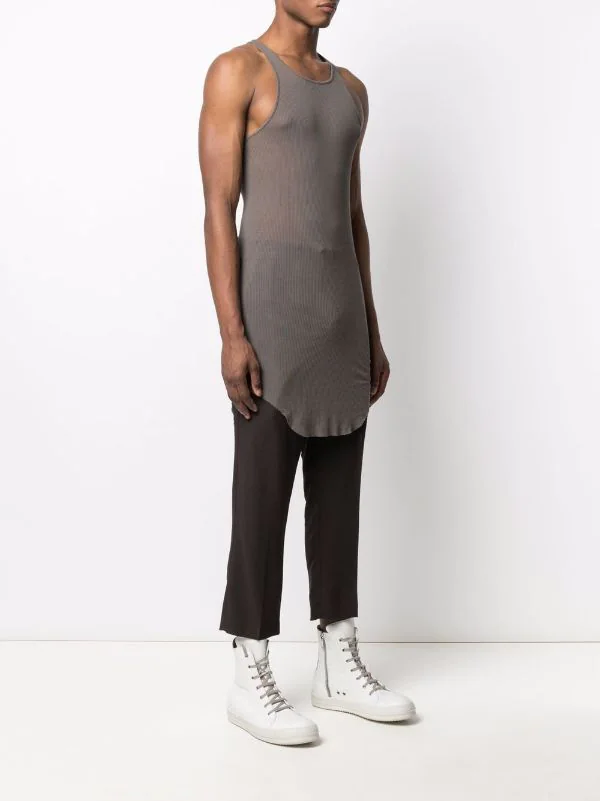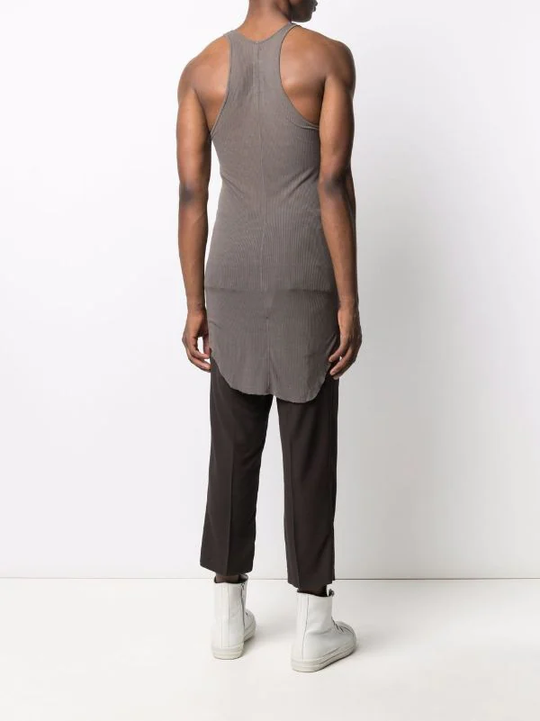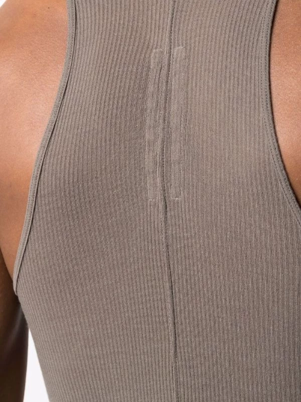 Détail nervuré, encolure ronde, design sans manches, ourlet incurvé.