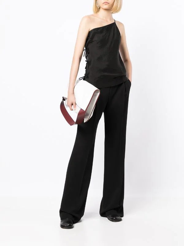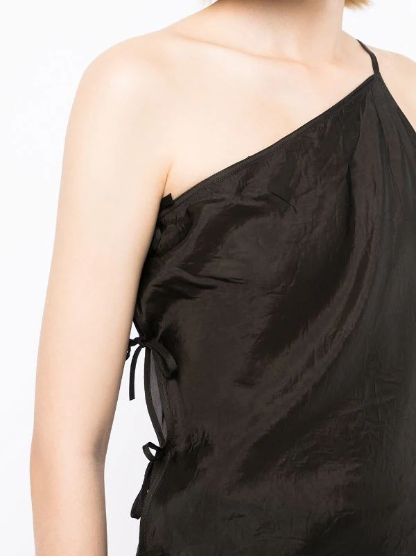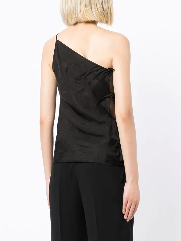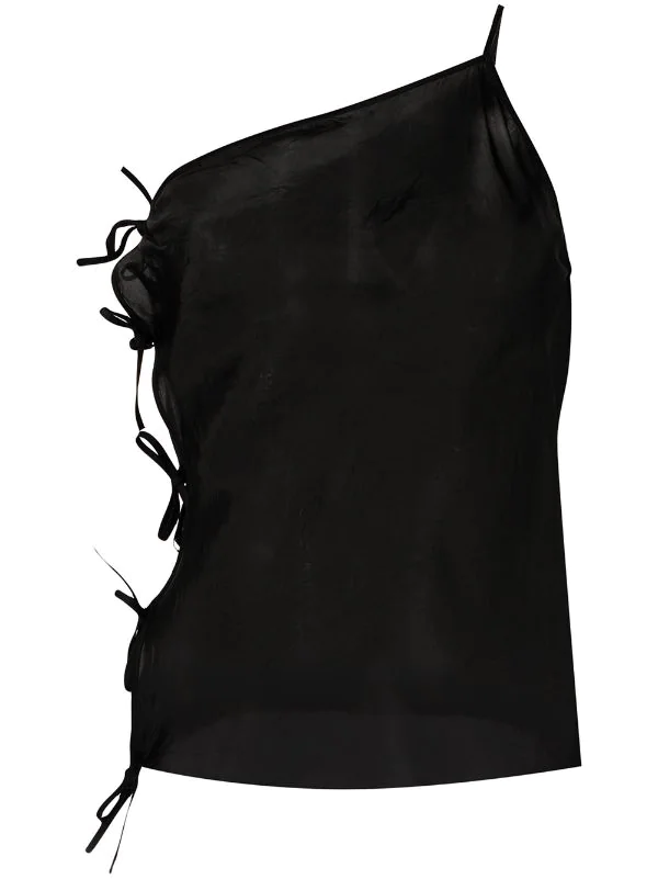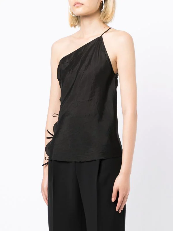 Fermeture à nouer sur les côtés, design asymétrique à une épaule, design sans manches, ourlet droit. Couleur : noir.