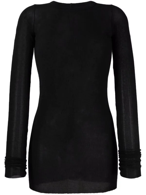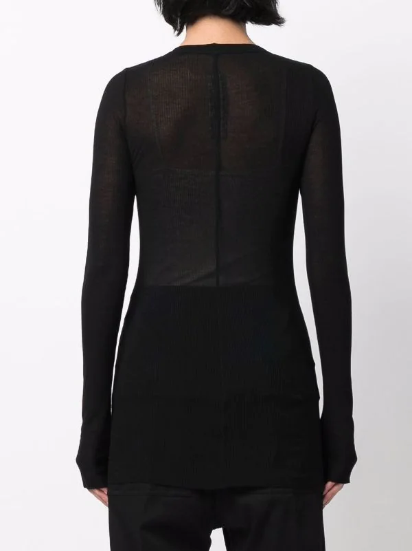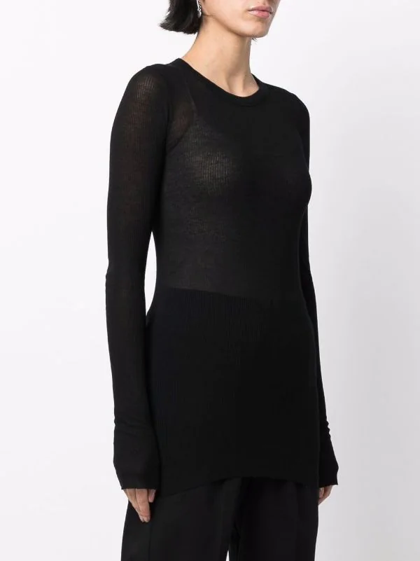 Effet de transparence, encolure ronde, manches longues, ourlet droit. Couleur : noir.