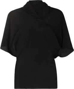 Détails drapés, encolure asymétrique, ourlet droit, manches courtes. Couleur : noir.