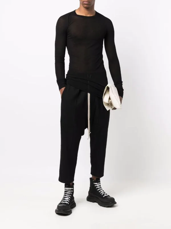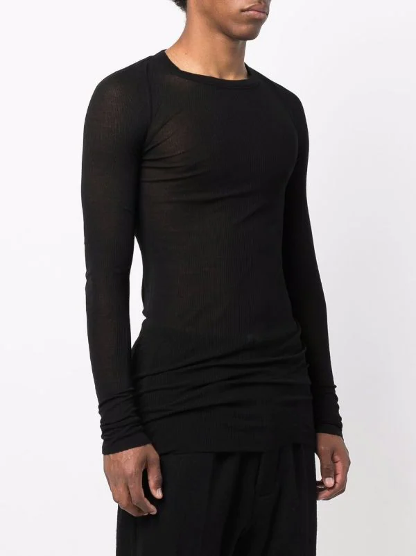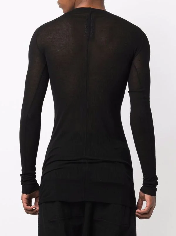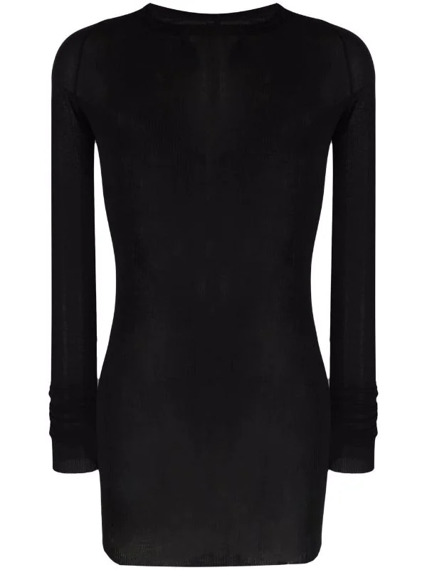 Effet de transparence, coupe slim, manches longues, encolure ronde. Couleur : noir.