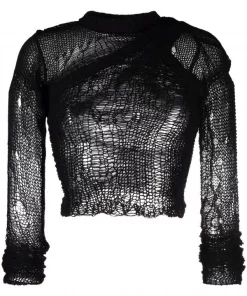 Effet usé, encolure ronde, manches longues. Couleur : noir. Matière : laine.