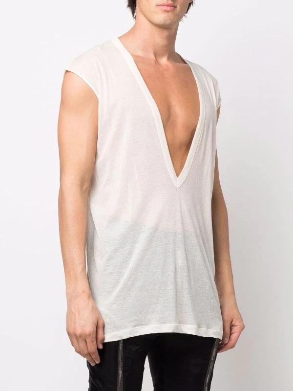 Col v profond, mancherons, ourlet droit. Matière : coton.