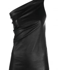 Détail drapé, design asymétrique à une épaule, design sans manches, bords francs. Couleur : noir.