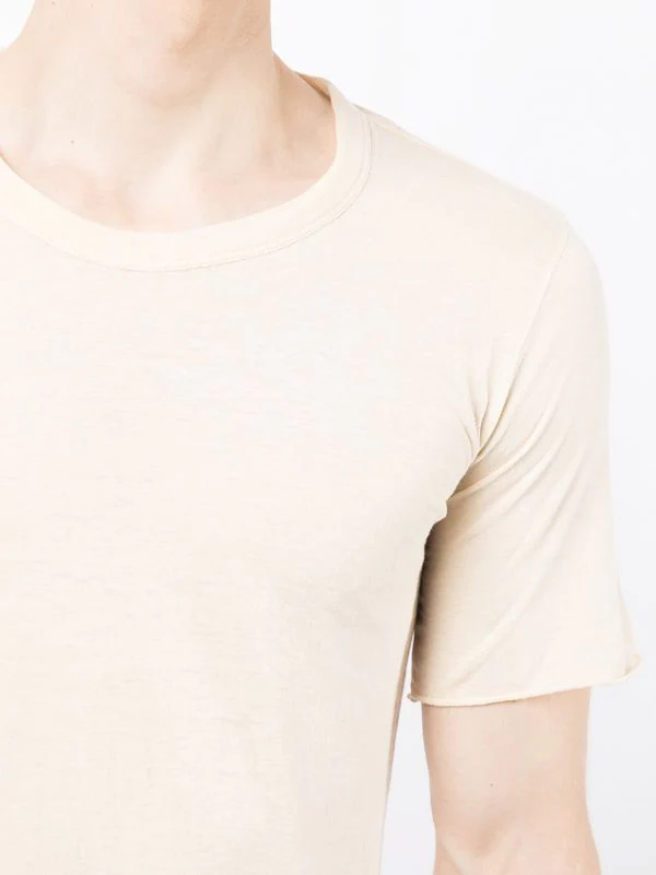 Maille fine, encolure arrondie, manches courtes, ourlet droit. Matière : coton mélangé.