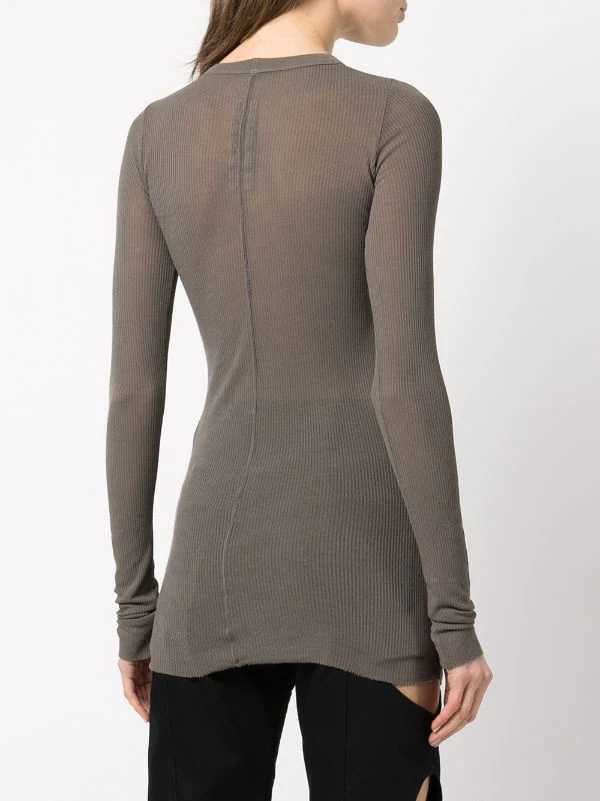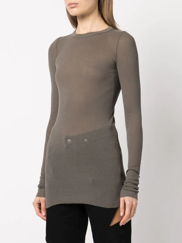 Fines nervures, effet de transparence, encolure ronde, manches longues.