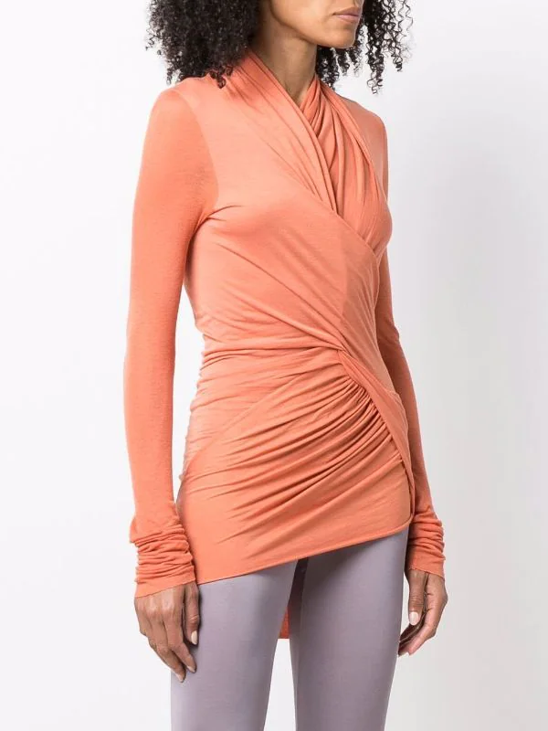 Détail drapé, détails de fronces, encolure ronde, manches courtes, ourlet incurvé.