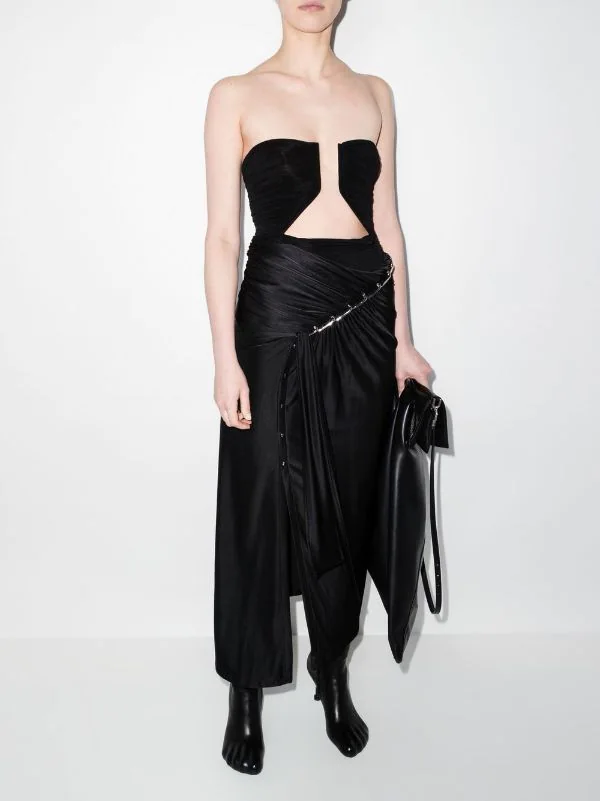 Sans bretelles, design bandeau, design corbeille, construction stretch. Couleur : noir.