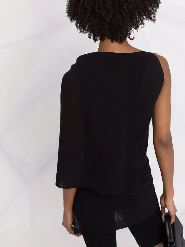 Effet superposé, design asymétrique, design en maille. Couleur : noir. Matière : coton biologique.