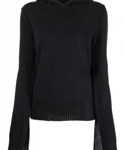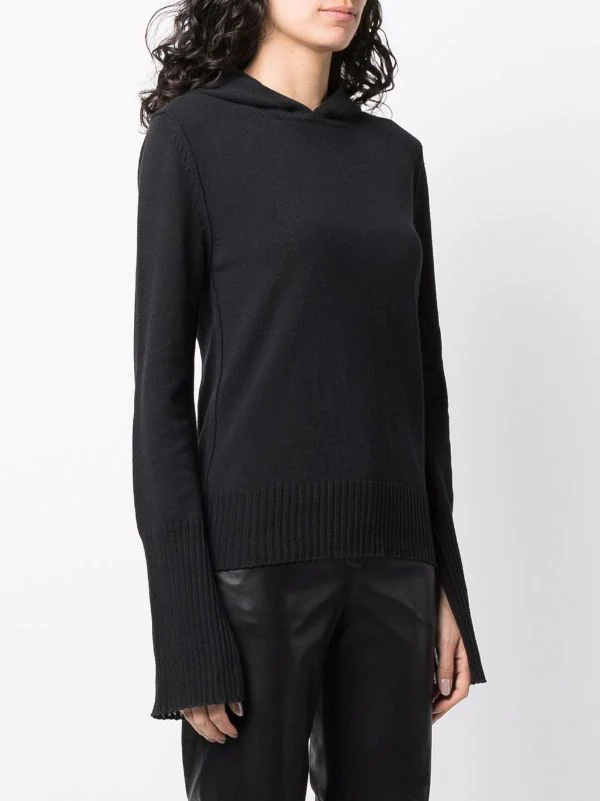 Maille fine, capuche classique, bordures nervurées, manches longues. Couleur : noir. Matière : coton.