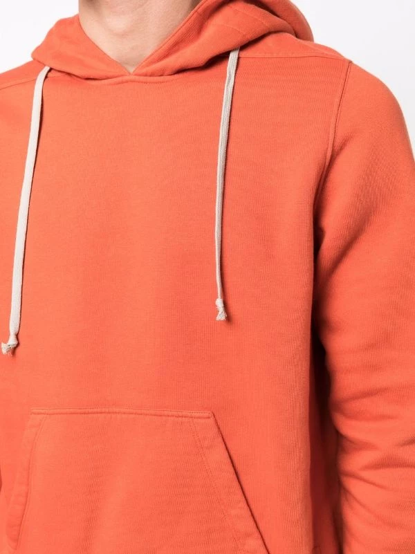 Poche plaquée sur le devant, capuche à lien de resserrage, manches longues, poignets élastiqués, ourlet élastiqué. Couleur : orange. Matière : coton biologique.