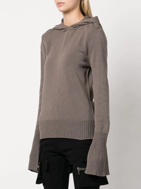 Maille fine, capuche classique, manches longues, bordures nervurées. Matière : coton.