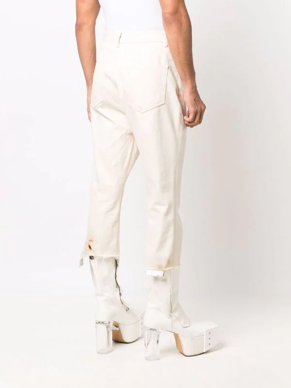 Coupe slim, coupe évasée, boutonnière sur le devant, poches latérales fendues.