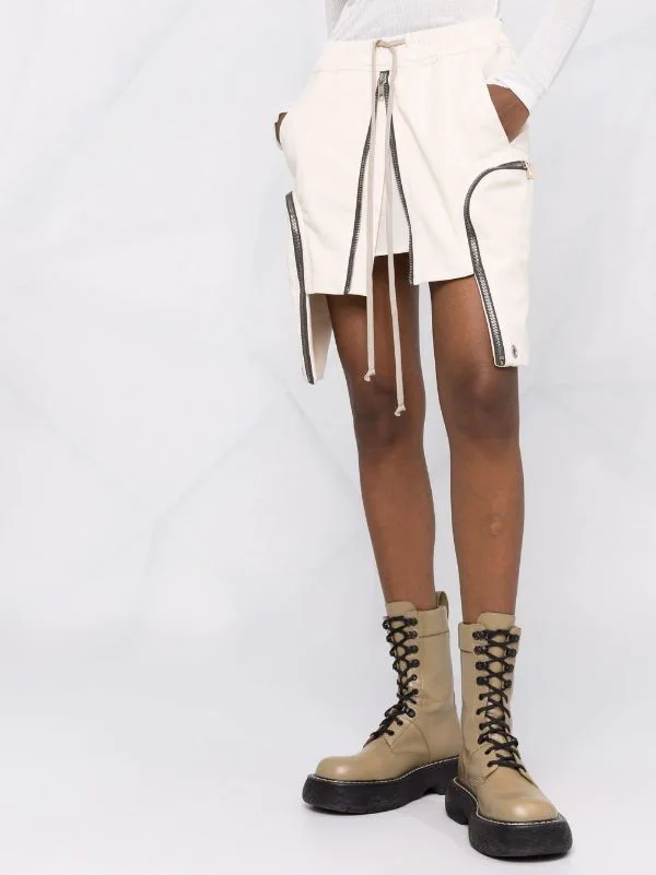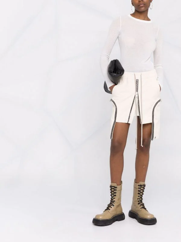 Lien de resserrage, fermeture zippée devant, design asymétrique.