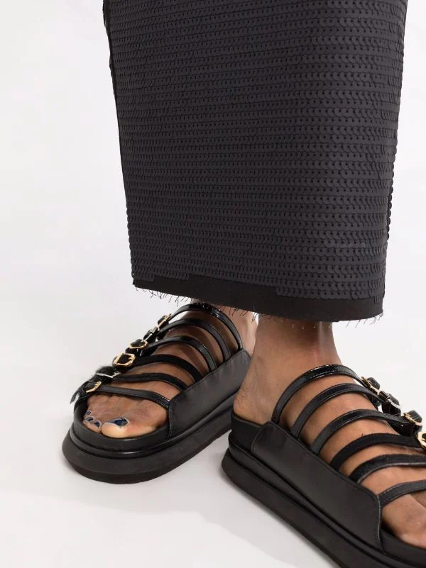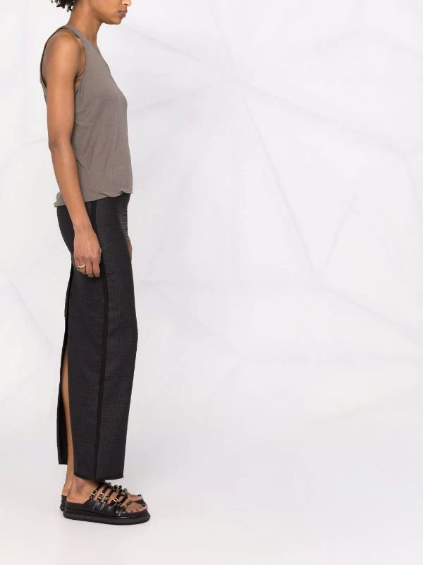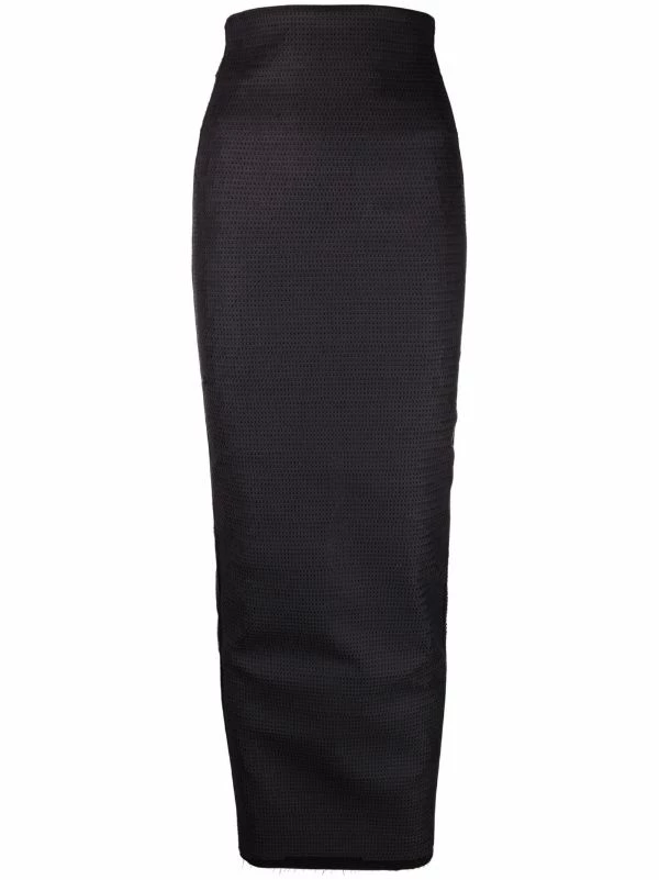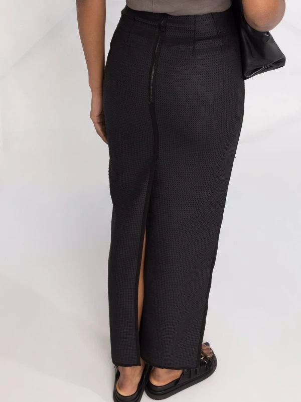 Détails de sequins, coupe longue, jupe crayon, taille haute, fente à l’arrière. Couleur : noir.