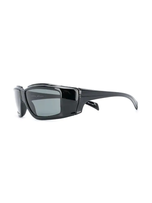 Lunettes de soleil à monture rectangulaire Rick Owens avec monture rectangulaire, verres teintés et branches droites à extrémités angulaires. Couleur : noir. Ces lunettes peuvent être adaptées à tous types de verres de prescription. Ce produit est vendu dans une boîte de protection.
