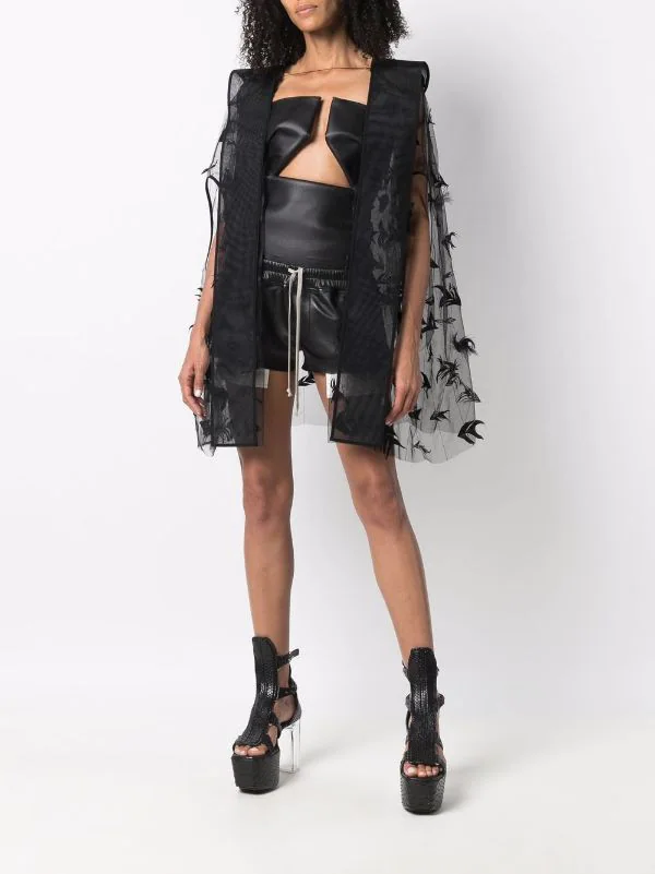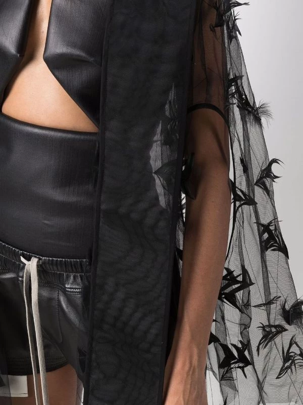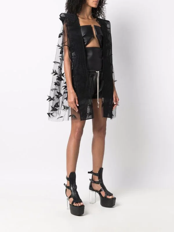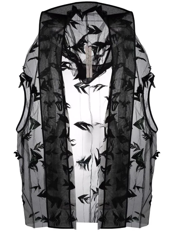 Appliqué, effet de transparence, col châle, emmanchures. Couleur : noir. Matière : coton mélangé.